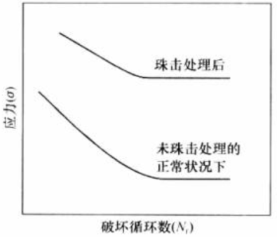 • 采用直径0.1-1mm小钢珠以高速冲击试样表面,以去除表面锐角、毛边等易应力集中处,且使表面压缩至钢珠直径的1/4-1/2深度,使零件表面产生残余应力而抑制疲劳裂纹的扩展。